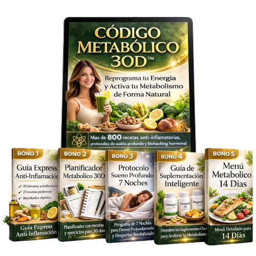 🎁 Al adquirir CÓDIGO Metabólico hoy, recibirás totalmente GRATIS estos 5 regalos exclusivos para facilitar tu rutina.